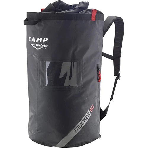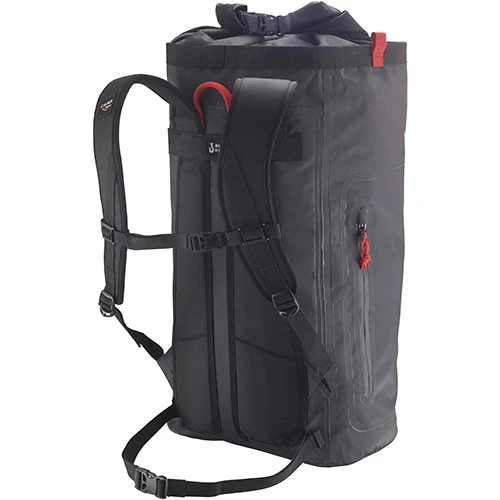 Transparent label pocket. Interior zip pocket, gear loops and loops for fastening rope ends and a hauling handle and two side loops for loads up to 50 kg