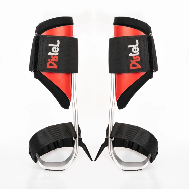 Distel spurs with DMM hot-forged aluminium shank in cooperation with DMM with improved 2020 pads and PTFE coated gaffs.