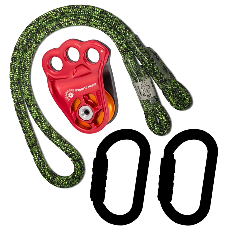 Complete with 1 x Red Eccentric Hitchclimber Pulley, 2 x Oval Carabiners of your choice (DMM, Petzl, Rock Exotica, CT) , 1 x Courant Phoenix 8mm / 90cm Eye to eye hitch.