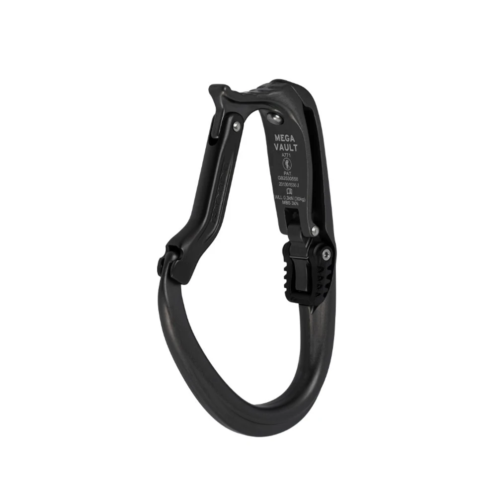 The Mega Vault can be retrofitted to almost every harness and many tool belts, with a large storage ledge for selective removal of gear and a replaceable gate keeper to hold the gate open for easy installation and removal of tools. The Mega Vault can also be fitted to vehicles and work bags for further secure storage of large items, or small ones.
