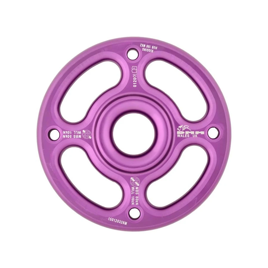 Complex 3D rigging focused onto a single anchor. The DMM rigging hub can be used to form a super strong centralised anchor point for use in treework, rope access and rescue. Radiused surfaces throughout allow direct rope or textile attachment – this includes running ropes, girth hitched slings, tied in prusiks, etc. Use of multiple 3D anchors often allow the hubs to be used as a lightweight alternative to a tripod for edge management or targeted lifting points e.g over a manhole or cave entrance. Certified to our in-house Linking Components standard.