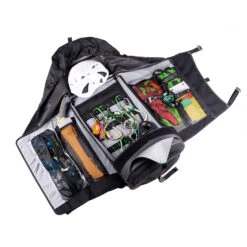 The option to open it like a traditional bucket-style bag lets you reach in for one item or quickly feed in rope, and the reinforced sides and bottom keep it standing up straight, even when it’s empty!