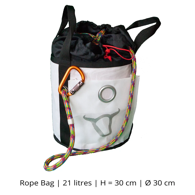 Rope Bag with large opening. The closing flap material can be easily folded back over the rim allowing easy loading. Breathable and robust net material.