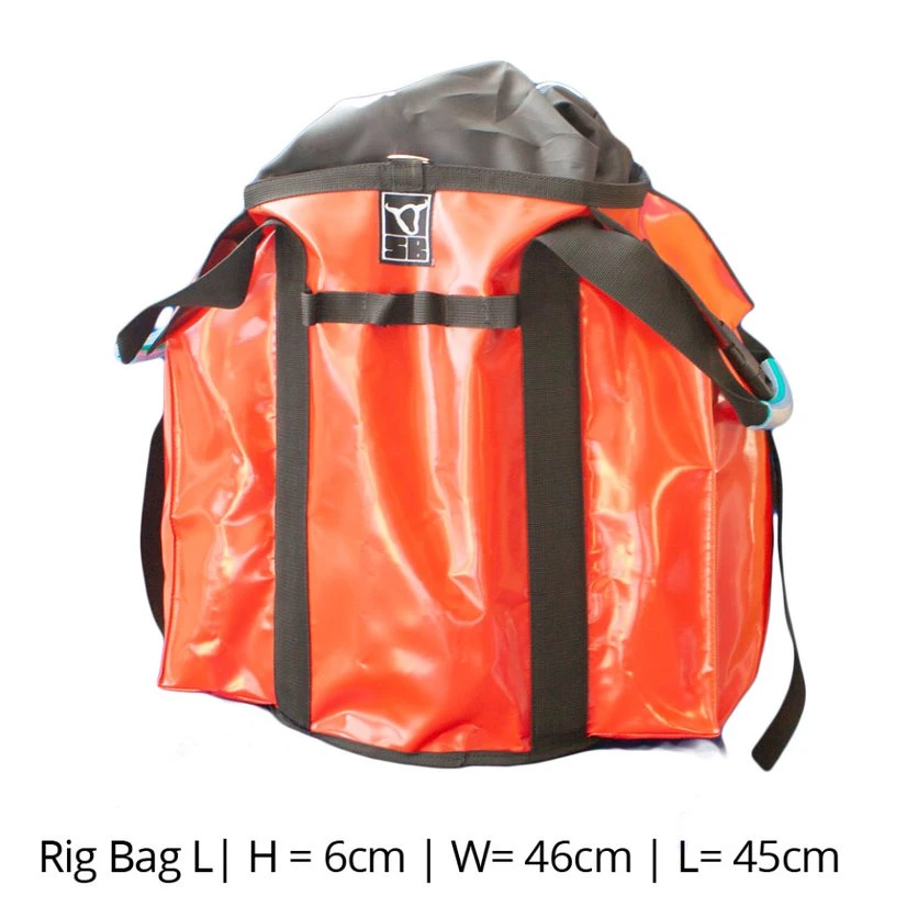 Robust bag featuring positions for attaching tools, clips and loops for extra carabiners. With stable carry straps and side pockets this bag is ideal for lowering ropes, rope brakes, slings and all the other important stuff. The opening folds easilyback over the top rim leaving the bag open and upright like a bucket. The rigging bag is also ideal for carrying a climbers PPE.