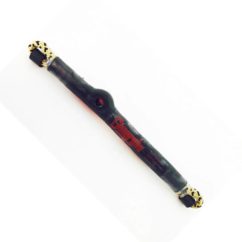 The attachment point on the 20cm tether is centrally placed. The addition of a rubber ring at each end of the tether ensures the Rope Wrench is held in a neutral position.